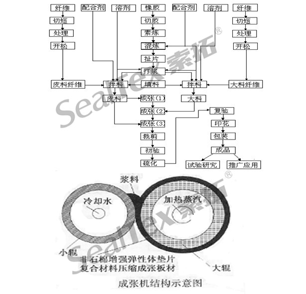 生產(chǎn)無石棉墊片材料的工藝按材料的類別而各有不同,目前在國內(nèi)使用比較廣泛的有兩種,輥壓工藝和抄取工藝。以下是對這兩種工藝的簡介: