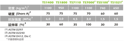 墊片材料 密度(g/cc) 粘接劑 最高間歇溫度(℃) 推薦使用截介質(zhì) 最低抗張強度 MPa)